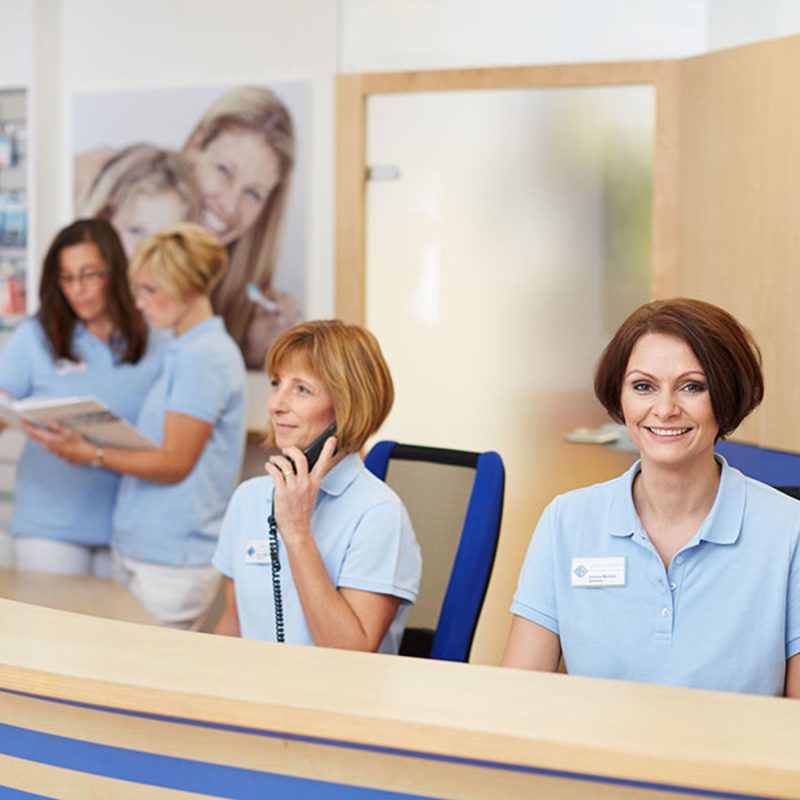 In unserer Praxis arbeiten Ärzte, Zahntechniker, Prophylaxefachkräfte und medizinische Fachangestellte unter einem Dach Hand in Hand gut zusammen.